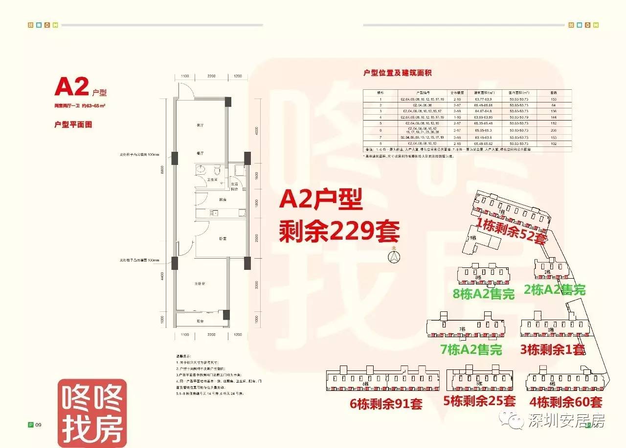 A2户型为两房两厅一卫,63-65平米,与A1户型为镜像户型,共剩余229套。其中,1栋剩余52套,2栋A2户型全部售完,3栋剩余1套,4栋剩余60套,5栋剩余25套,6栋剩余91套,7栋、8栋A2户型全部售完。