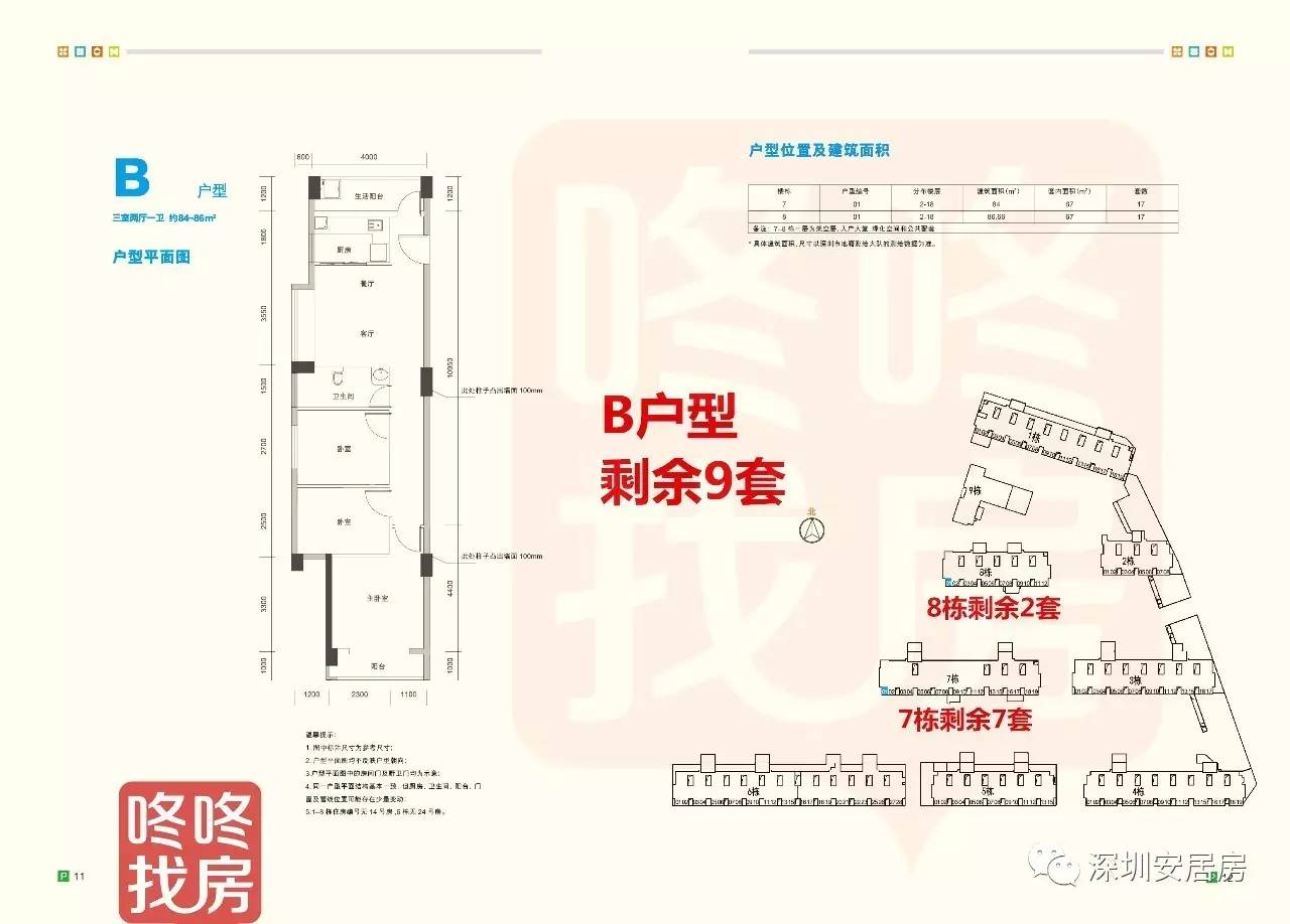 B户型为三房两厅一卫,84-86平米,共剩余9套。其中,7栋剩余7套,8栋剩余2套。