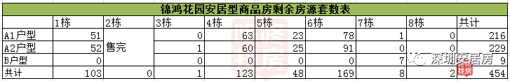 项目共9栋房源,剩余共454套。其中,1栋剩余103套,2栋已全部售完,3栋剩余1套,4栋剩余123套,5栋剩余48套,6栋剩余169套,7栋剩余8套,8栋剩余2套。