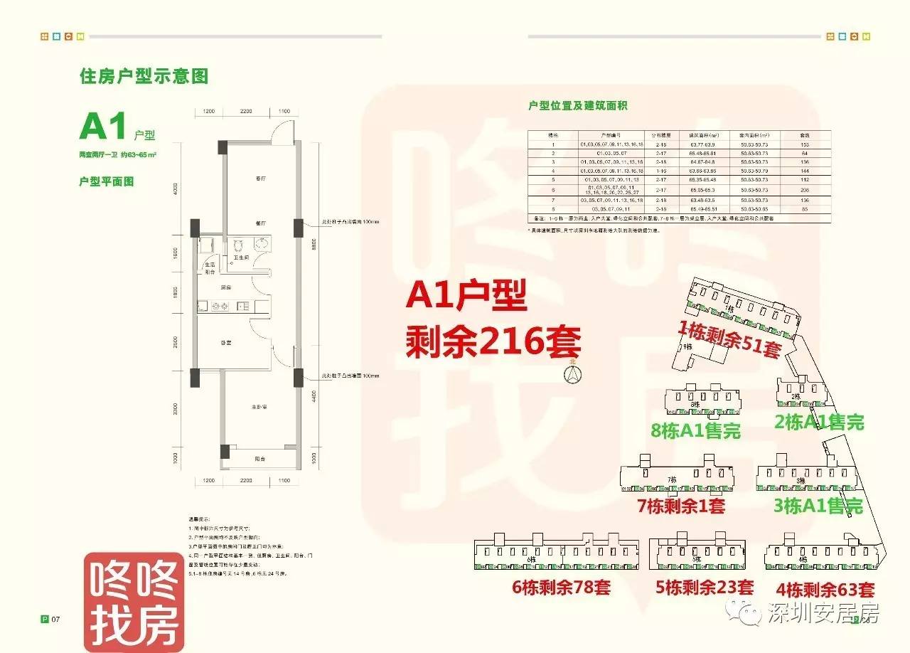 A1户型为两房两厅一卫,63-65平米,共剩余216套。其中,1栋剩余51套,2栋、3栋A1户型全部售完,4栋剩余63套,5栋剩余23套,6栋剩余78套,7栋剩余1套,8栋A1户型全部售完。