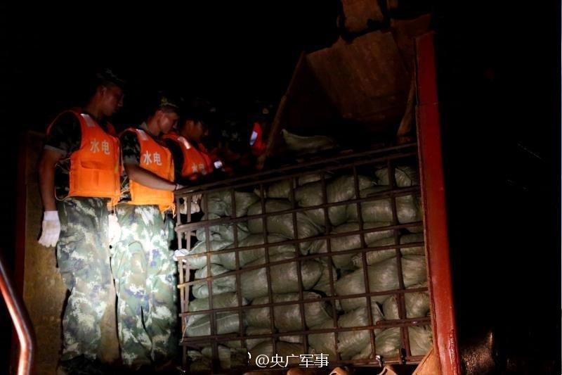 奋战在抗洪一线的武警水电第四支队的官兵们