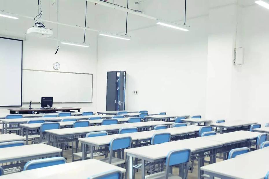 教室也贯彻了蓝白两色,听到久违的铃声一响,脑海回到了,踩着点上课的生活。