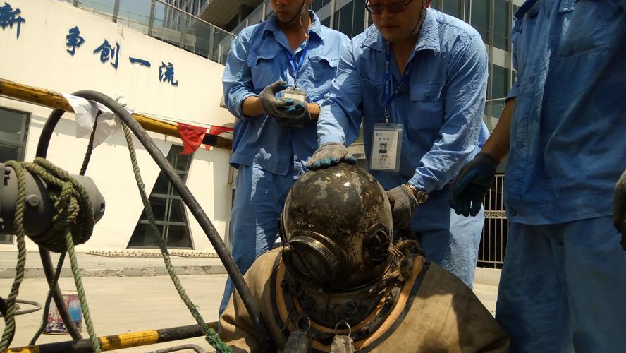 万事俱备,只欠头盔!拍一下潜水帽,“告诉”潜水员可以下水了。