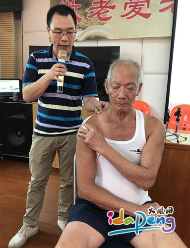 范主任现场为老人进行艾灸示范