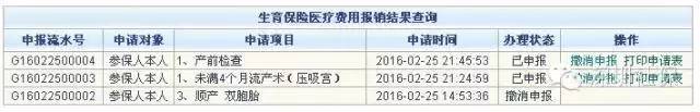 1. 申报成功后可以通过“生育保险医疗费用报销查询”菜单查看办理状态。