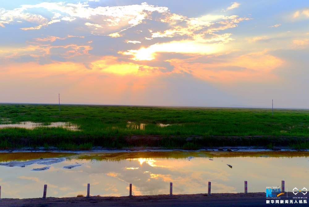 图为航拍“起死回生”的青土湖。新华网发 王生元 摄