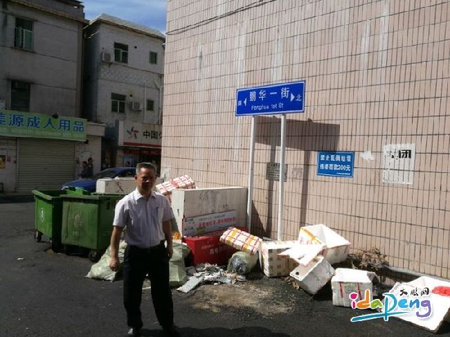 鹏华一街垃圾不入桶,建筑垃圾乱堆放