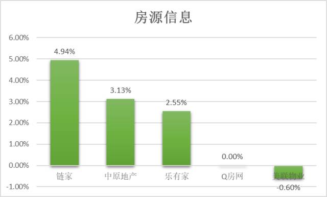 链家在房源信息方面净推荐率最高,为4.94%;中原地产与乐有家的顾客推荐率排名二三位,均高于2%。