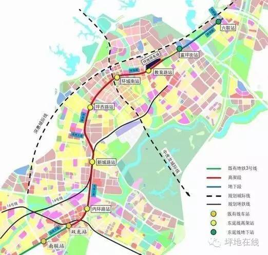 轨道3号线东延新站名:梨园、新生、坪西、高桥、白石塘、富坪、坪地六联