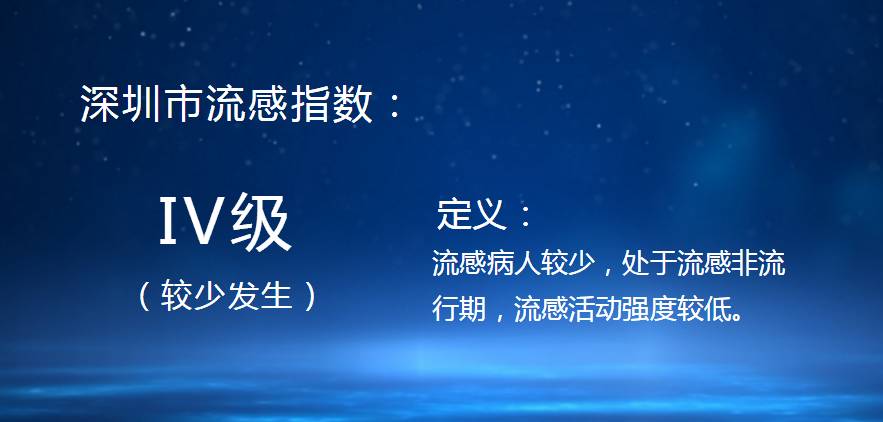 虽然在8月份开始,深圳的流感活跃程度就明显下降。未来一周(9月6日到9月12日),深圳市流感指数为Ⅳ级(较少发生),意味着深圳将处于流感非流行期。