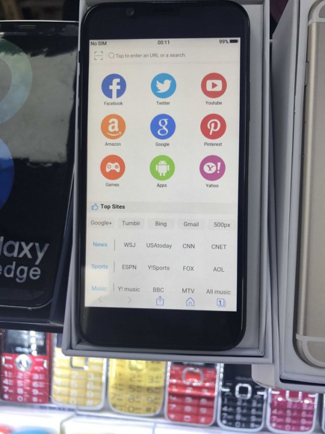 在其中一家,还摆着iPhone8样机,样机上果然没有Home键。传闻iPhone8会用人脸识别解锁,代替指纹解锁,也许是真的?