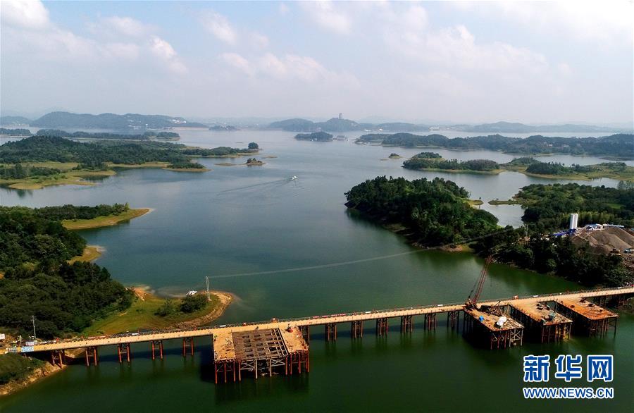 9月12日航拍的环万佛湖旅游扶贫公路。万佛湖位于安徽省六安市舒城县境内,湖面50平方公里,容水9亿立方米,是国家地质公园和中国首批“国家水利风景区”。2016年,万佛湖成为国家5A级旅游景区,它以岛湖风景为载体,形成以湖泊景观、火山景观、文化景观为一体的岛湖文化旅游区,每年吸引大量游客前来观赏度假。新华社记者陶明 摄