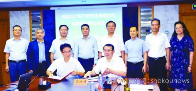 ▲ 南山区委书记、区长王强与深投控签领导代表双方签约。消息报记者 郭进 摄