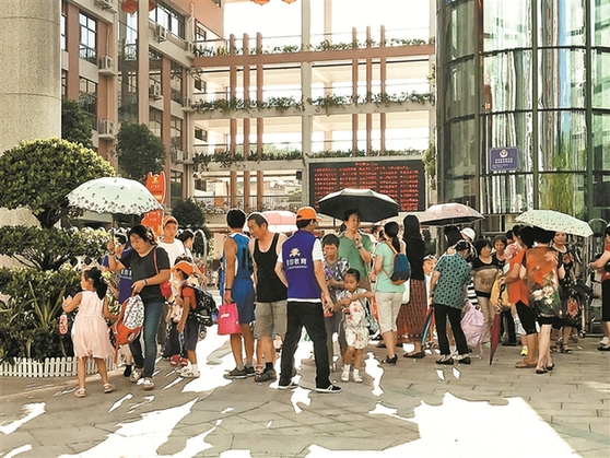 龙华某学校门口,家长在等待孩子放学。 深圳晚报见习记者 王宇摄