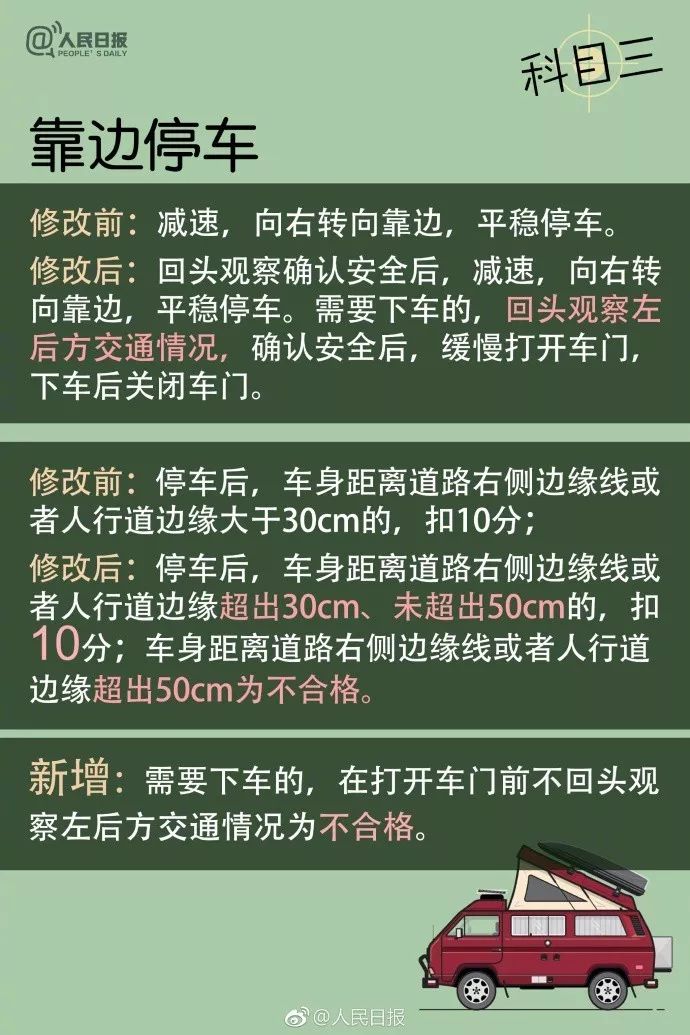 新修订的《机动车驾驶人考试内容和方法》将于10月1日起实施,详细规定了新的驾考评判标准。靠边停车需回头看、开转向灯少于3秒即转向不合格、下车开车门前不回头看不合格、过路口不主动避让行人不合格……驾考新规权威干货,滑动查看↓↓