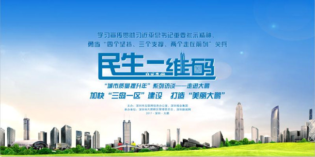 10月17日,《民生二维码》“城市质量提升年”系列访谈将走进大鹏新区,大鹏新区党工委副书记、管委会主任李勇将与广大居民和网友代表交流互动,现场征询民生民意,解答民生诉求。