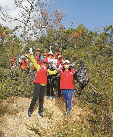 志愿者自发组织穿越东西涌海岸线,沿途捡拾垃圾,宣传环保。