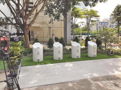 引进首批欧洲景观式智能地埋垃圾桶,在大鹏新区管委会大院亮相。
