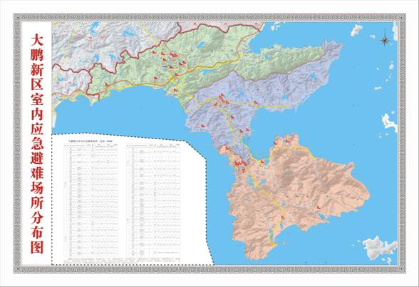大鹏新区共有35个室内应急避难场所,可容纳5370人(其中,南澳办事处12个,可容纳2300人;大鹏办事处10个,可容纳1400人;葵涌办事处13个,可容纳1670人)。场所分布设立在学校、文体中心、社区、敬老院、社区活动中心等区域。详细分布见下图: