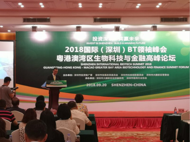 9月20日,“投资深圳•共赢未来”2018国际(深圳)BT领袖峰会粤港澳大湾区生物科技与金融高峰论坛在五洲宾馆深圳厅举行。
