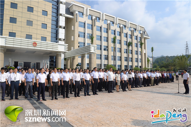 深圳新闻网10月8日讯(记者 李小辉)10月8日,大鹏新区在新区管委会广场举行了庄严的升国旗仪式。大鹏新区领导班子成员,区直属机关单位、各办事处等干部职工近500人参加仪式。