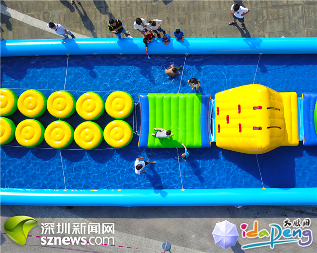 13日下午两点,共约200名市民齐聚在较场尾民宿小镇小广场参与水上大冲关比拼。比赛要求参赛者要在120秒的限定时间内完成一系列关卡,完成者即可赢得初赛奖品。而在120秒内完成者则可晋级参加“终极PK挑战赛”,在最短时间内完成项目的前3名获胜者将获得终极大奖。
