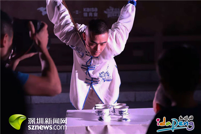 如果说早上的水上大冲关活动让大家想到的是激情和刺激,那到了13日晚,较场尾小广场则摇身一变成充满“经典韵味”的大舞台,皮影戏、变脸、长壶等一系列精彩表演逐一闪亮登场。