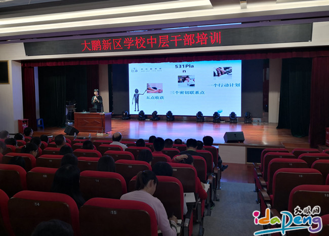 近日,大鹏新区公共事业局在华侨中学举办了学校中层干部培训班,来自新区各中小学、幼儿园中层干部共100多人参加。
