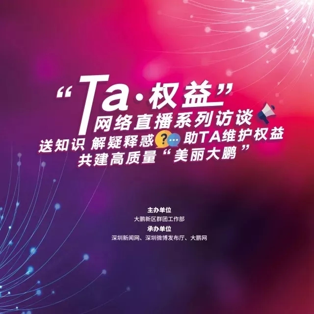 还记得 前段时间火遍了四海八荒的 《三生三世十里桃花》吗 “暖男”夜华的温柔贴心 掳走了众多小迷妹的心 虽然没有夜华 但我们要告诉你 在现实生活中 如果历劫的“上神”遇到困难 工 会 也能为你挡风遮雨 你若出色 工会推选你为先进 你若遭遇困境 工会为你雪中送炭 你若想涨知识 工会是你的大学校 从职工群众关心的事做起 在职工最不满意的地方下功夫 工会是为职工群众服务的组织 你所关心的职工相关问题 在这里,我们统一给你解答哦 11月8日(周四) 上午10:00-11:00 由大鹏新区群团工作部组织开展的 “Ta·权益”网络直播系列访谈 第四场 将以“工会为你排忧解难”为主题开谈 有问题,你来提 我们来回答! 陈伟律师 2002年通过第一届司法考试后即从事律师工作,2005年开始执业。曾在内地司法局工作近三年,具有党政工作经验,熟悉政府办事流程。 在执业期间,长期从事劳动与人力资源法律的理念研究与实务操作,处理过超过上千起劳动人事争议仲裁、诉讼纠纷,并多次参与地方劳动立法,如参与《深圳经济特区和谐劳动关系促进条例》的制定与征求意见等,并参与制定了深圳市律师协会《深圳律师办理劳动法律事务操作指引》等标准化指引。 多次作为律师嘉宾参加深圳电视台都视频道、深圳电台“快乐106.2”等现场直播和节目录制,并在《深圳律师》、《广东律师》、《深圳特区报》 、《深圳晚报》 、《南方都市报》、《消费周刊》、 《羊城晚报》、《上海法治报》 各类新闻媒体及报刊杂志发表评论和专业文章。 职工看病就医有问题? 遇到劳动纠纷怎么办? 公司工会近期是否有计划开展活动? …… 工作中,你是否遇到这些权益问题 请留下你的疑难困惑 我们将竭诚为你解答! 在11月8日的直播现场 我们也欢迎你的收看与提问!