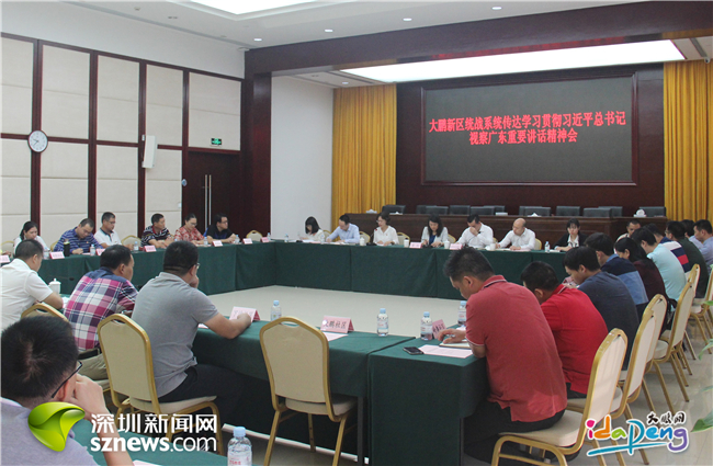 会上传达学习了习近平总书记视察广东重要讲话精神及省、市、新区有关会议精神。会议指出,在改革开放40周年、粤港澳大湾区建设全面推进的关键时刻,习近平总书记再次亲临广东、深圳视察指导,充分体现了习近平总书记对广东、深圳工作的高度重视、深情厚爱、殷殷重托。习近平总书记的重要讲话为广东、深圳在新时代推动改革再出发进一步指明了前进方向、提供了根本遵循,令新区干部群众倍感振奋、备受鼓舞、倍增信心。学习好、宣传好、贯彻好习近平总书记视察广东重要讲话精神,是当前和今后一个时期新区的首要政治任务和头等大事。统战系统要以走在最前列的标准学习宣传贯彻习近平总书记重要讲话精神,按照省、市、新区有关会议的部署要求,旗帜鲜明开展统一战线各项业务工作。