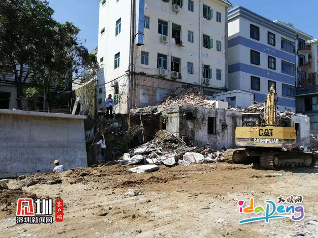 鹏城河综合整治工程房屋拆除现场