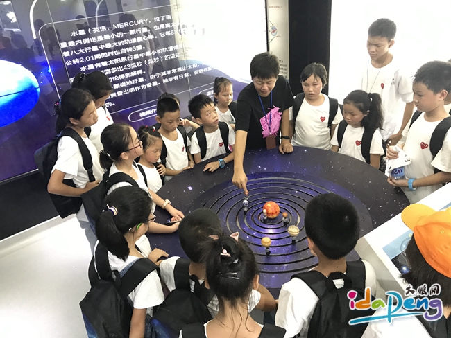 活动在西冲天文台举行。在天文科普展厅,孩子们在工作人员的讲解下认识了八大行星,了解了宇宙太阳系天体的分布和运行、天文气象模拟、仰望星空观测,银河系的运转,还参观了球幕近距离观测太阳望远镜。