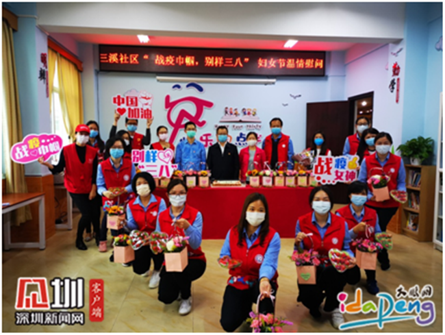 “疫情当前,各行各业的女性及巾帼志愿者们奋战在疫情防控一线,默默无闻守护着葵涌,在防疫和助力企业复工复产发挥了“半边天”作用,今天我们过了一个别样的“三八”节。在接下来的日子里,我们将继续为坚决打赢疫情攻坚战汇聚强大的巾帼力量,一起迎接春暖花开,静待疫情消散。”葵涌妇联负责人说。