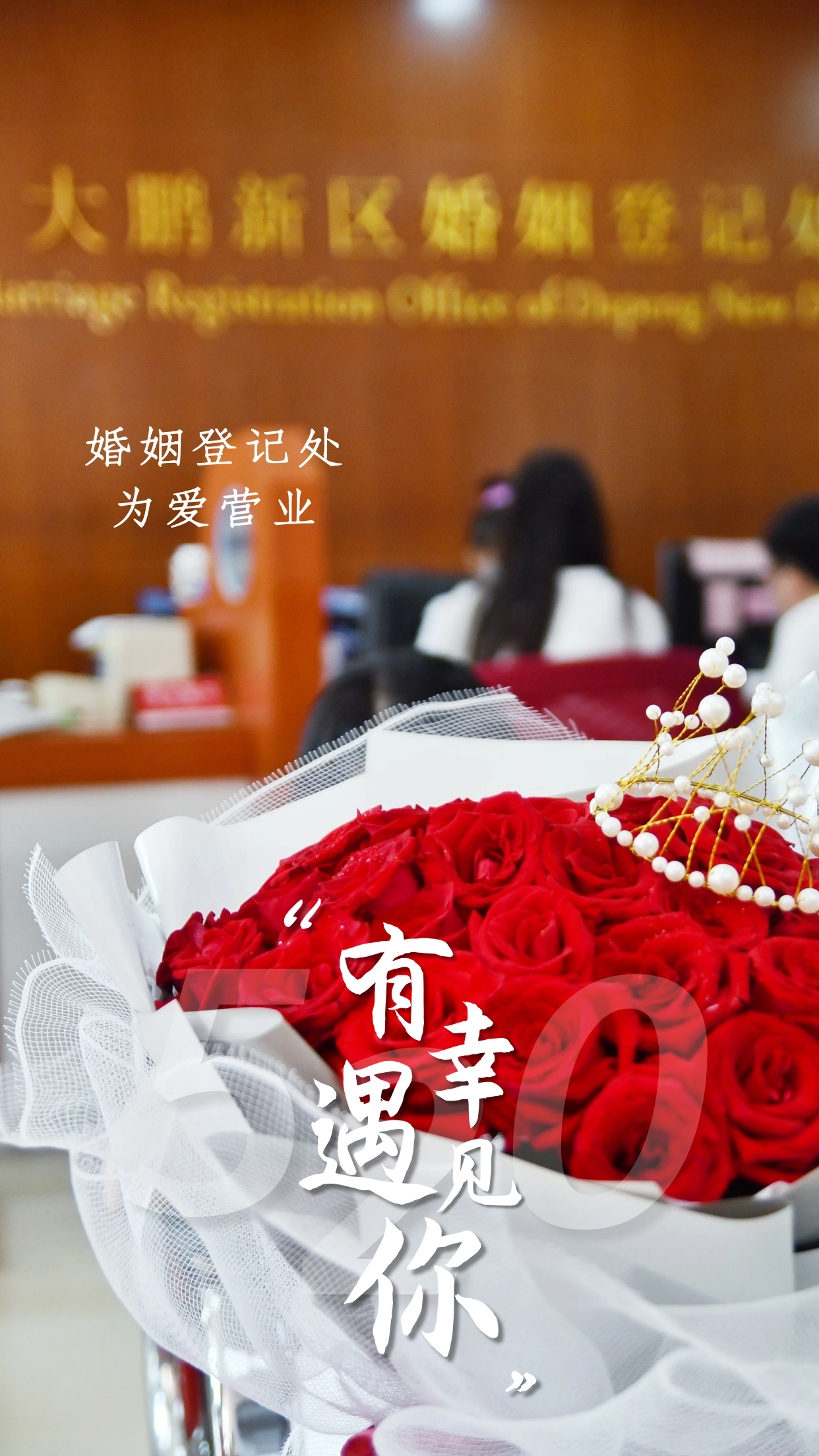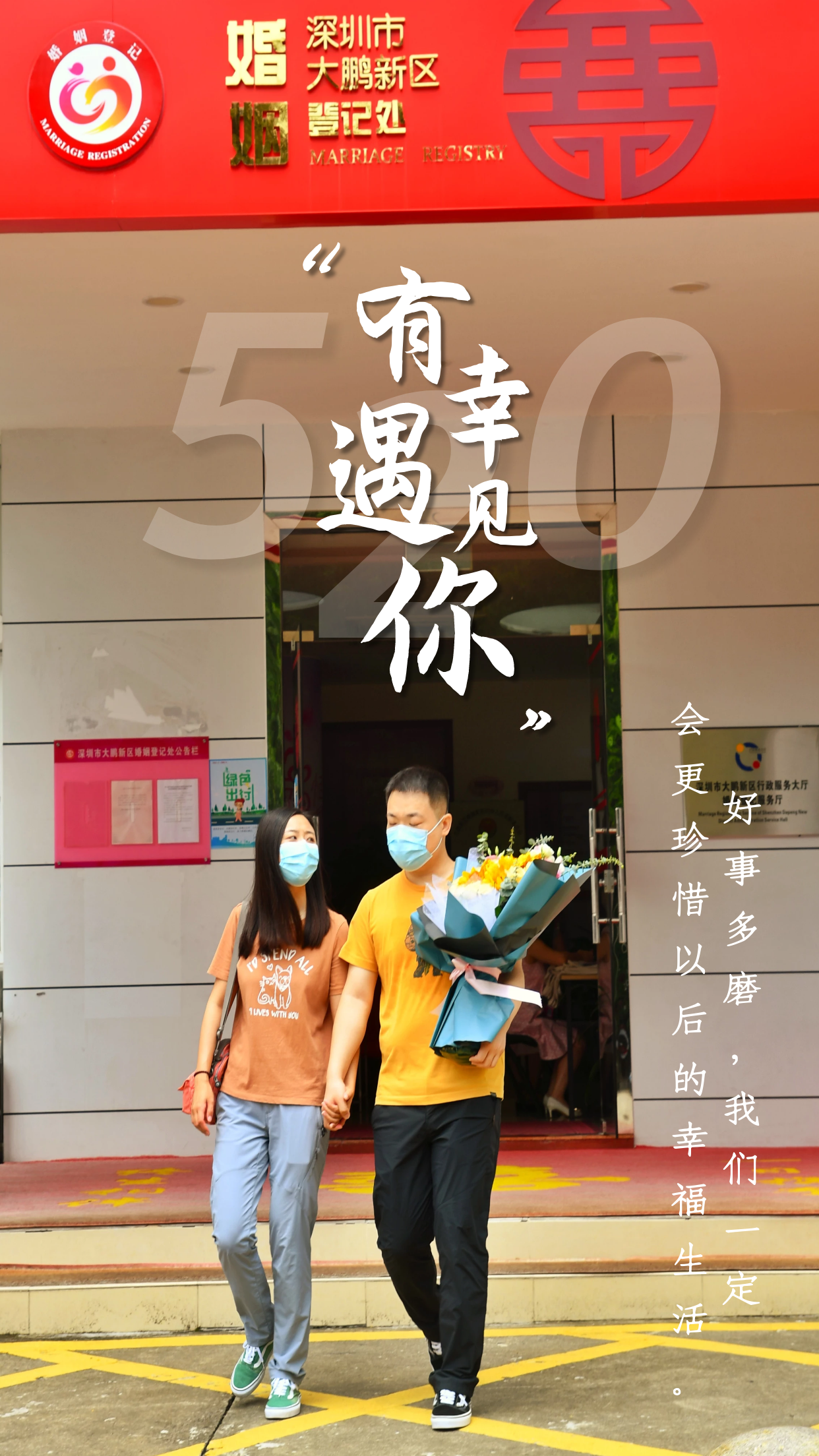 作为信息时代的爱情节日,在经历疫情之后,今年的“520”显得尤为特别,很多人对于爱情有了更多的感悟,5月20日,大鹏新区通过提供网上预约加现场预约的形式共为41对新人办理了登记手续。