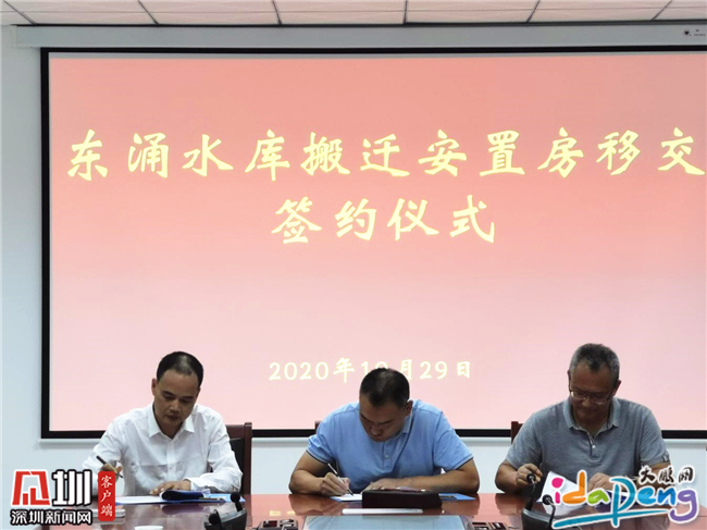 10月29日,大鹏新区东涌水库搬迁安置房(一期)举行移交签约仪式,标志着东涌水库搬迁安置房(一期)建设任务全面完成。