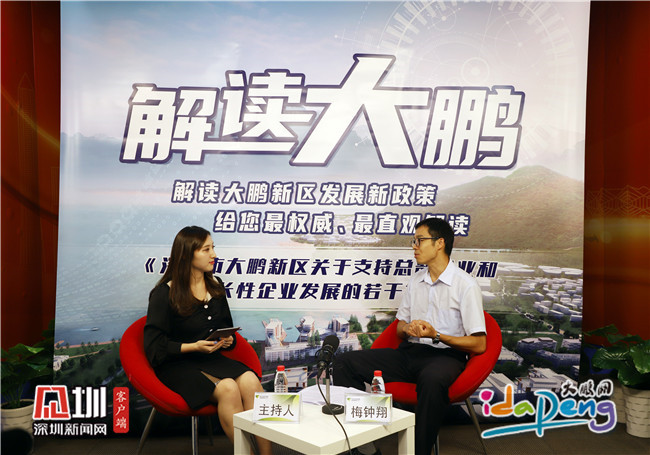 日前,大鹏新区科技创新和经济服务局相关负责人梅钟翔来到深圳新闻网在线访谈室,做客由大鹏新区政务服务数据管理局与深圳新闻网联合开展的“解读大鹏”系列访谈节目,为网友在线解读《深圳市大鹏新区关于支持总部企业和高成长性企业发展的若干措施》。