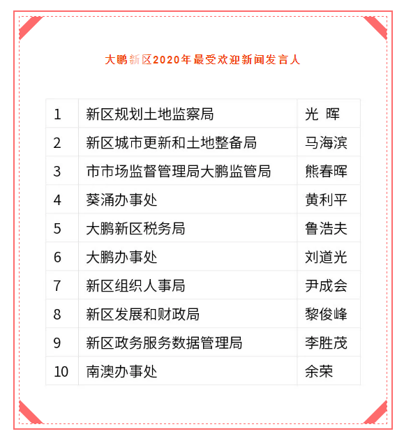 大鹏新区举办“2020点赞新闻发言人”活动颁奖仪式暨庆祝记者节活动,公布新区最受欢迎新闻发言人名单。