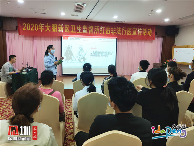 见圳客户端·深圳新闻网11月12日讯(见圳客户端·深圳新闻网记者 谢雨婷 实习记者林宏松 通讯员 方妙丹)近年来,一些非法行医者铤而走险,利用酒店客房等隐蔽场所流动实施非法行医,严重危害消费者的健康。为提高酒店员工辨识非法行医的能力,增强举报意识和警惕意识,引导安全就医行为,11月10日,大鹏新区卫生监督所在深圳市东部酒店有限公司开展打击非法行医宣传活动。
