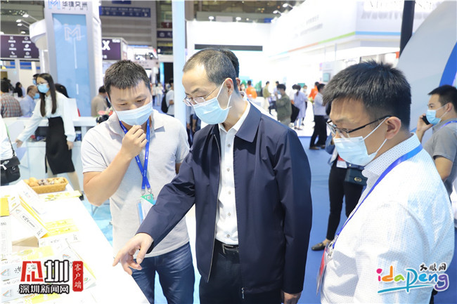 刘峰带队前往高交会大鹏新区展区,参观了解各参展企业的科技创新成果。