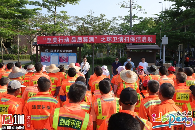 见圳客户端·深圳新闻网4月13日讯(见圳客户端、深圳新闻网记者 黎阳 林宏松 )4月13日,“至美行动,品质葵涌”之环卫清扫保洁启动仪式在葵涌公园举行。葵涌办事处相关负责人、环卫外包服务企业项目负责人及环卫工人代表参加。