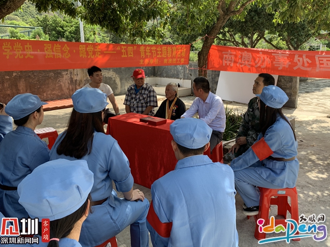南澳青年们首先来到深圳党史馆和深圳方志馆,通过观看党史展览,深入了解深圳历史,领略深圳地区在中国共产党领导下进行革命、建设和改革的不懈奋斗史以及所取得的辉煌成就,通过铭记光辉历程,凝聚奋进力量。当天下午,青年们来到南澳办事处西涌社区探望东江纵队革命抗战老前辈林水金奶奶,林奶奶向青年们讲述了自己当年参加革命抗战的故事,“抗战年代,条件十分艰苦,缺少食物,战士们只能用生米煮一点粥喝,就是在这样艰苦的条件下,我们战友们辗转多地开展情报工作,最终取得了抗战胜利。现在的生活来之不易,大家要好好珍惜,在每个岗位都作出自己的贡献,也要把我们的‘东纵精神’一代一代传承下去。”随后,社区老年协会会长、老校长苏锦山爷爷为团员青年讲述西涌的海上抗日历史,介绍了辖区烽火台、前进报旧址等红色革命遗址的故事,讲到动情之处,苏爷爷忍不住哽咽并叮嘱青年们一定要铭记历史,青年自强,为国家富强做贡献。现场,南澳办事处四级调研员叶晓英寄语青年,要珍惜现在来之不易的生活,学好党史,勇于担当奉献,不负青春。在革命老前辈、老党员的见证下,团员青年们重温了入团誓词,不忘入团初心,坚定跟党走的理想信念。