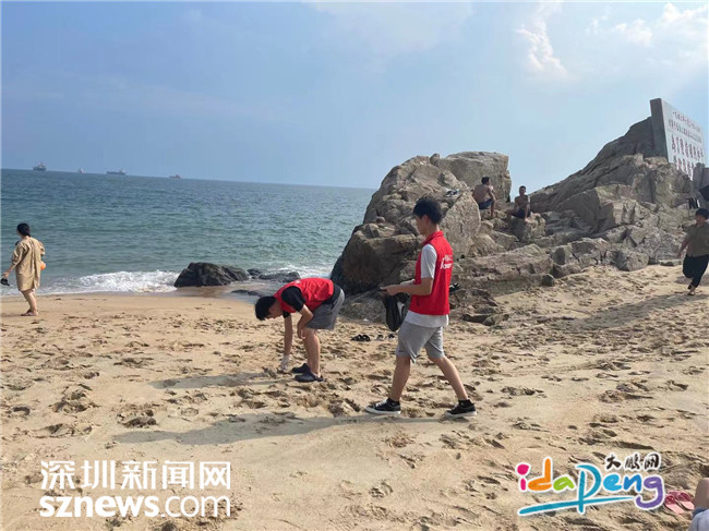 志愿者清理海滩垃圾