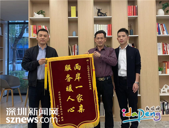 1月7日下午,一家台资企业内地负责人李海东将一面绣有“两岸一家亲,服务暖人心”的锦旗送到大鹏新区统战和社会建设局工作人员手上,感谢新区积极帮助协调公司续租事宜。