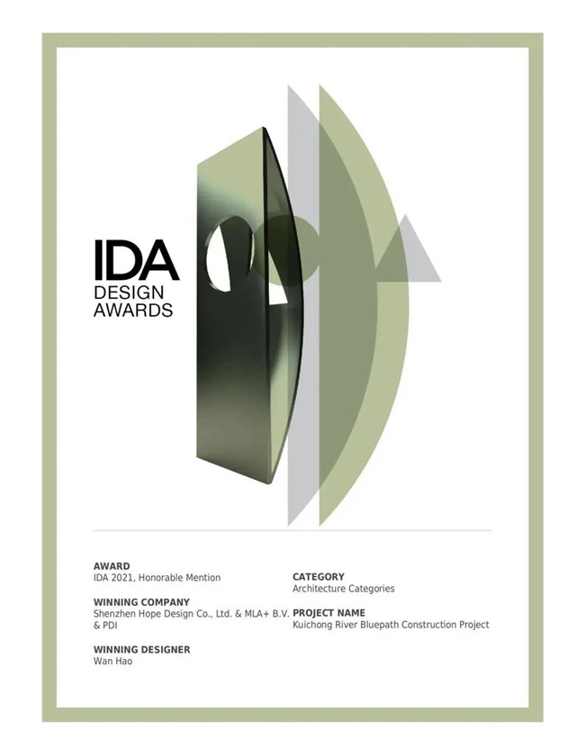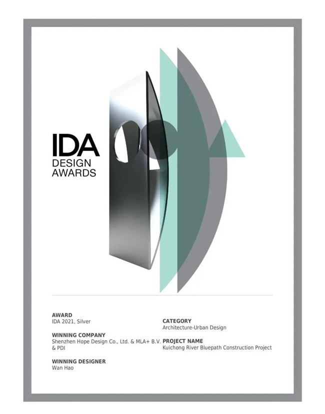 1月7日,美国IDA国际设计大奖(International Design Awards,简称IDA)公布2021年度获奖名单,葵涌河流域碧道建设工程从全球八十多个国家的数千个项目中脱颖而出,斩获2021美国IDA国际设计大奖/城市设计类银奖和设计大奖/景观类荣誉奖!