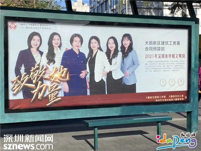 读特客户端·深圳新闻网3月9日讯(记者 林宏松 通讯员 潘宇宗 关世邦)近日,大鹏新区建筑工务署合同预算部在新区“致敬‘她’力量”学习宣传活动中,作为荣获深圳市“巾帼文明岗”先进单位“站”上了大鹏中心公交站台,成了新区一道亮丽的风景线。