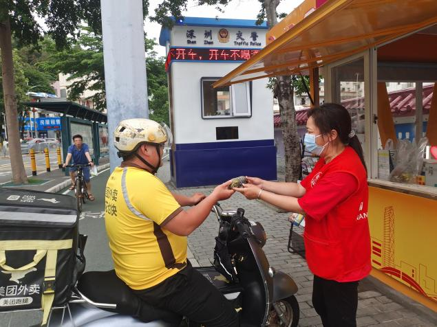 为外卖小哥送上暖心粽子