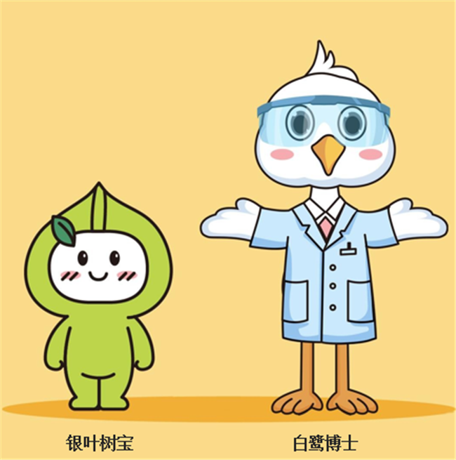 白鹭采用三头身职业角色设计,树宝采用两头身萌版设计。树宝通过头部的棱角、银叶树叶凸显其银叶树种子的特征。白鹭以羽冠、长嘴、翅膀、长脚等特点,表现白鹭特征,同时加入科研服装、生物医药实验器材,体现其职业权威特点,展现坝光产业特色。
