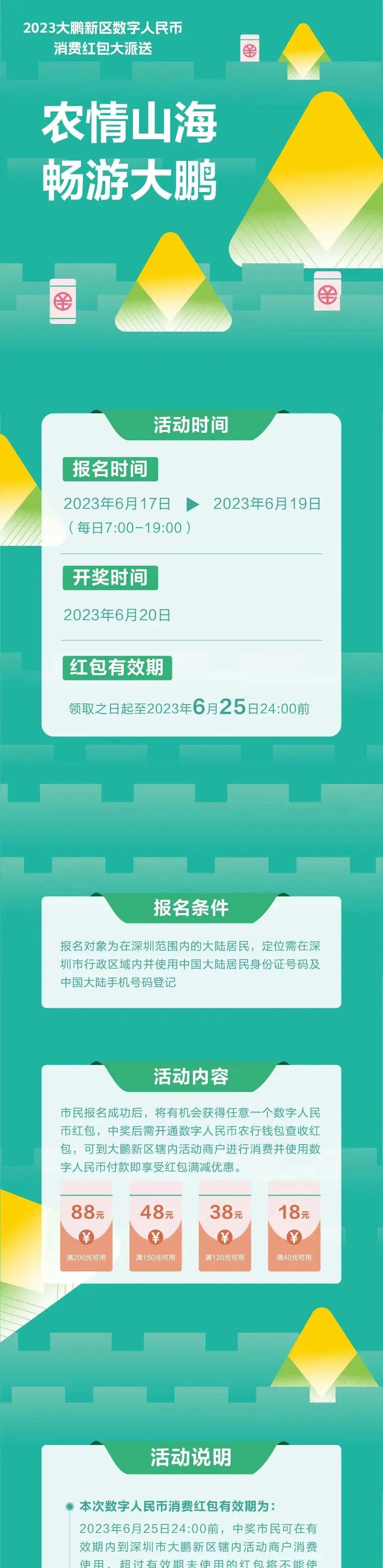 “农”情山海 · 畅游大鹏,大鹏新区数字人民币消费红包已准备就绪!这个端午假期,欢迎市民游客来大鹏,游山海、住酒店、品美食,还有各种优惠折扣等你来!