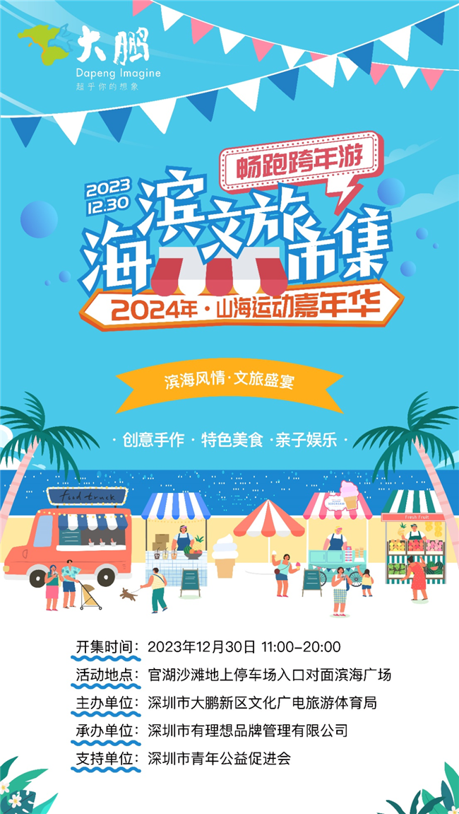 深圳新闻网2023年12月29日讯(记者 谢雨婷)元旦假期马上来啦!三天假期安排好去哪里玩了吗?大鹏新区一大波活动来袭,文化、艺术、体育应有尽有,开启活力满满新一年!