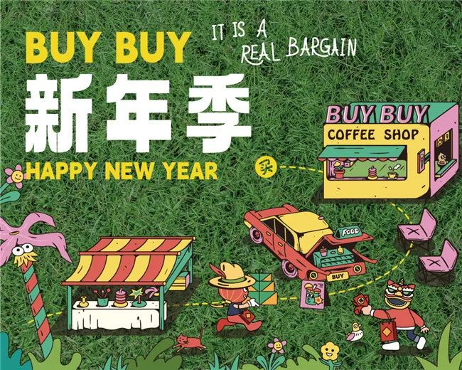 活动内容:结合新春新年消费热点,开展“Buy Buy 新年季”等主题活动,线上联动大众点评推出“嗨吃券”“嗨购券”优惠特价促销活动;线下携手商圈内各大商家联合推出换季服装、儿童用品、生鲜组合、家电家居等多种爆款商品,推出积分换购、满减套餐、折扣优惠等惠民福利。
